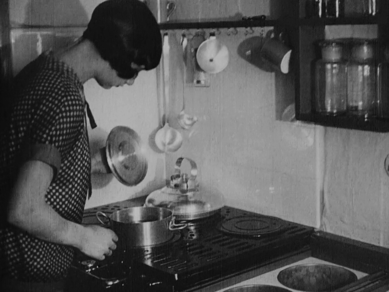 Pildid 1–4. Koduperenaine traditsioonilises köögis. Fragmendid filmist „Frankfurter Küche“ (režissöör Paul Wolff, 1927)