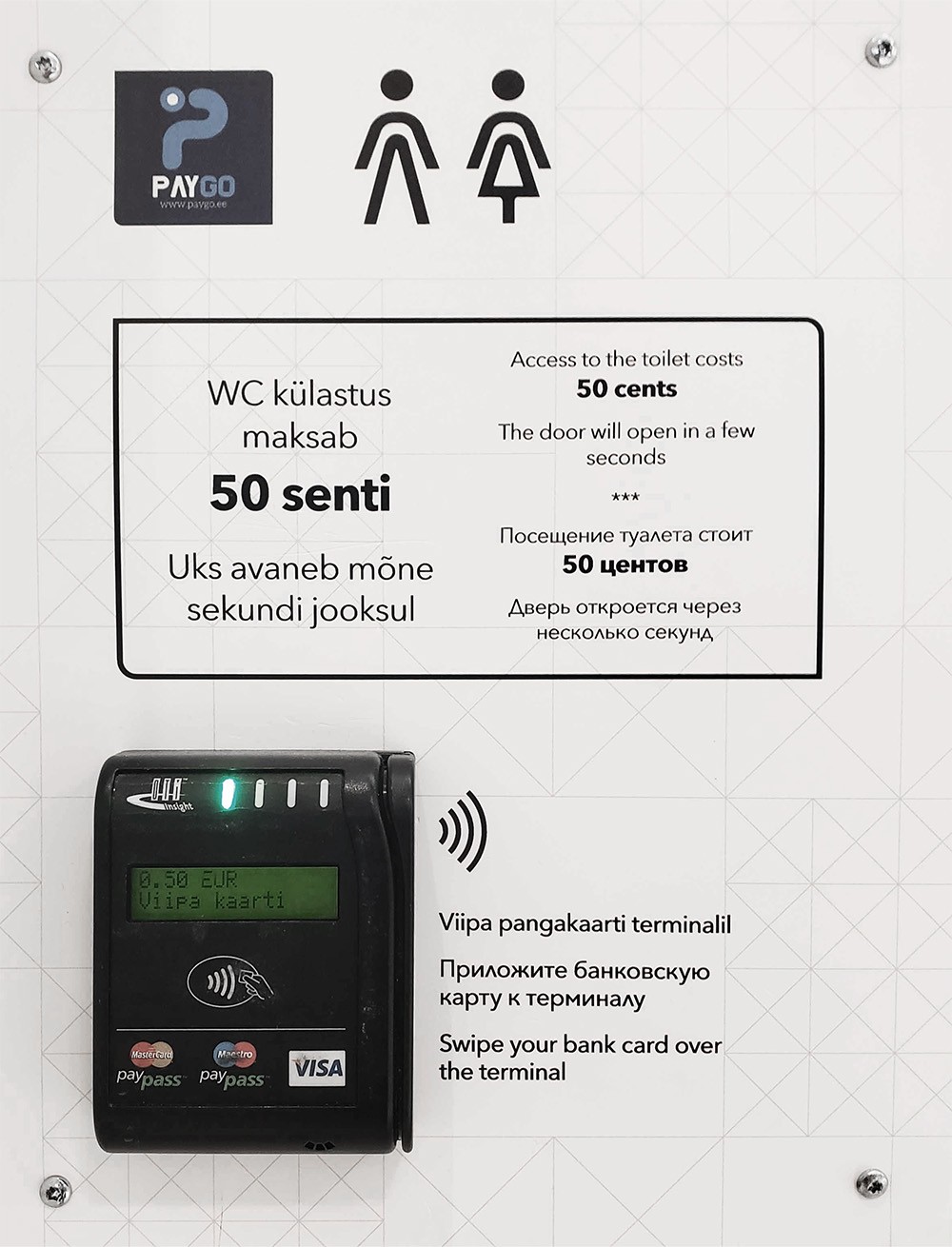 Või selline näide ühest Tallinna kaubanduskeskusest (vt Foto 2), mis ei võimalda kasutada tualettruumi ilma selle eest maksmata.