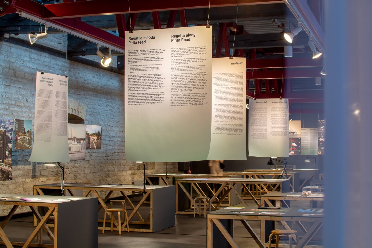 Nii on näitusel „Tallinn täispurjes. Linna muutev olümpiaehitus“ eksponeeritud originaaljoonistena Tallinna Infošrift, näituse kujunduses kasutati aga Tallinn Groteski. Niisugune kureerimisotsus võimaldab publikul kogeda ajaloolist disainiprotsessi ja selle tänapäevast jätku ühtse tervikuna. Tagasiside põhjal on vaatajad märkinud, et selline lähenemine aitab mõista tüpograafia rolli loo jutustajana, tuues esile elemente, mis argiselt kipuvad märkamatuks jääma. Niisiis on vaatajad taibanud, et näitusele kaasatud kirjašriftid ei ole pelgalt eksponaadid, vaid kommunikatsioonivahendid, mis tutvustavad kohaliku graafilise disaini ajalugu, lisades näituse kujundusele ka lisakihi.