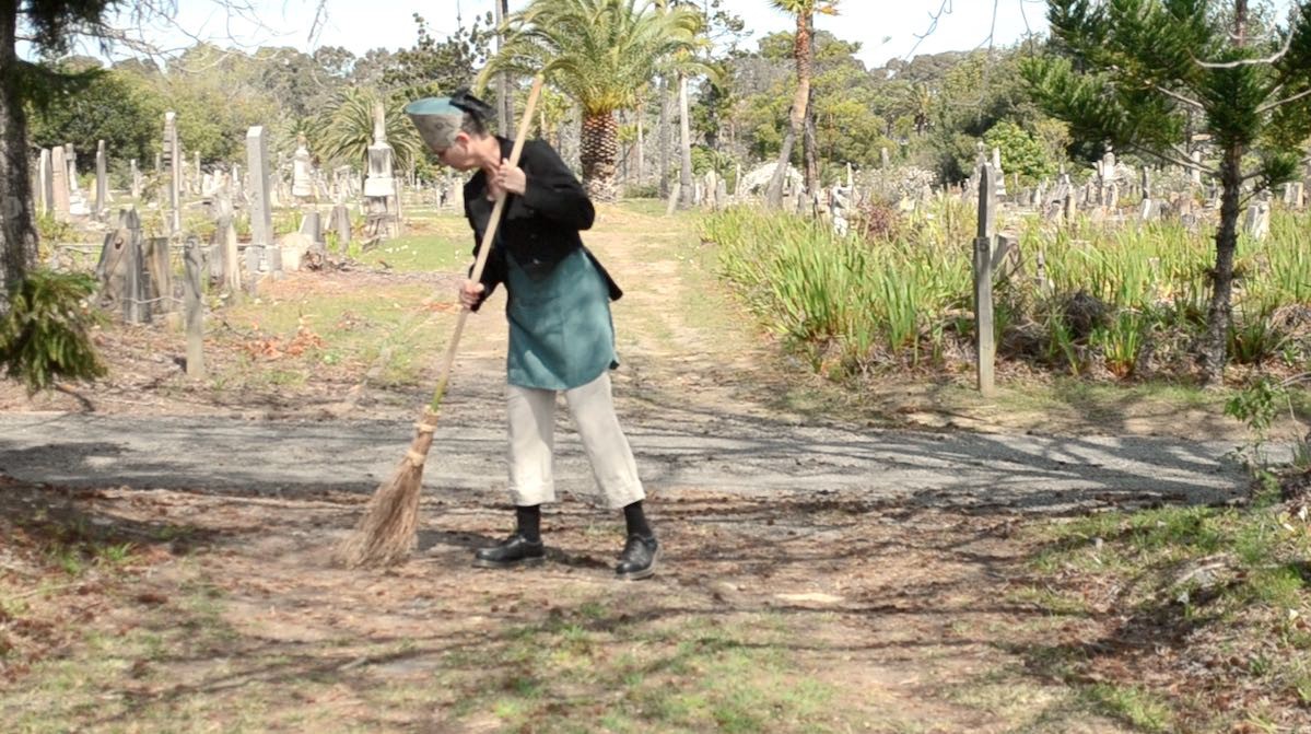 Pühin jalgrada ja tunnen, et olen hetkes täielikult kohal. Tunnen luuavarre siledust, kui see iga uue tõmbega mu pihkude vahel libiseb. Tunnen, kuivõrd ümar ja ühtlane see on, ja tugevdan haaret. Varrest käib kerge võbin läbi, kui tõmban luuaga üle ebatasase jalgraja. Lahtine kruus justkui rabiseb... siuh, siuh, siuh... üle rohmaka maapinna. Jätkan samas kohas pühkimist, et seda heli uuesti kuulda. Korraga kuulen kauguses rongi mööda sõitmas ja mu taju sööstab ääretult kaugele maapinnast, millele üksisilmi keskendusin. Mind on mu väikesest privaatsest mullist välja tõmmatud ja ma olen avaral surnuaial, nüüd mõtlen ma rongist ja kuna see kõlab kurvalt, nagu mõni Johnny Cashi laul, jätkan ma pühkimist ja sumbun iga uue luuatõmbega taas oma tegevusse ning unustan, kus ma viibin.