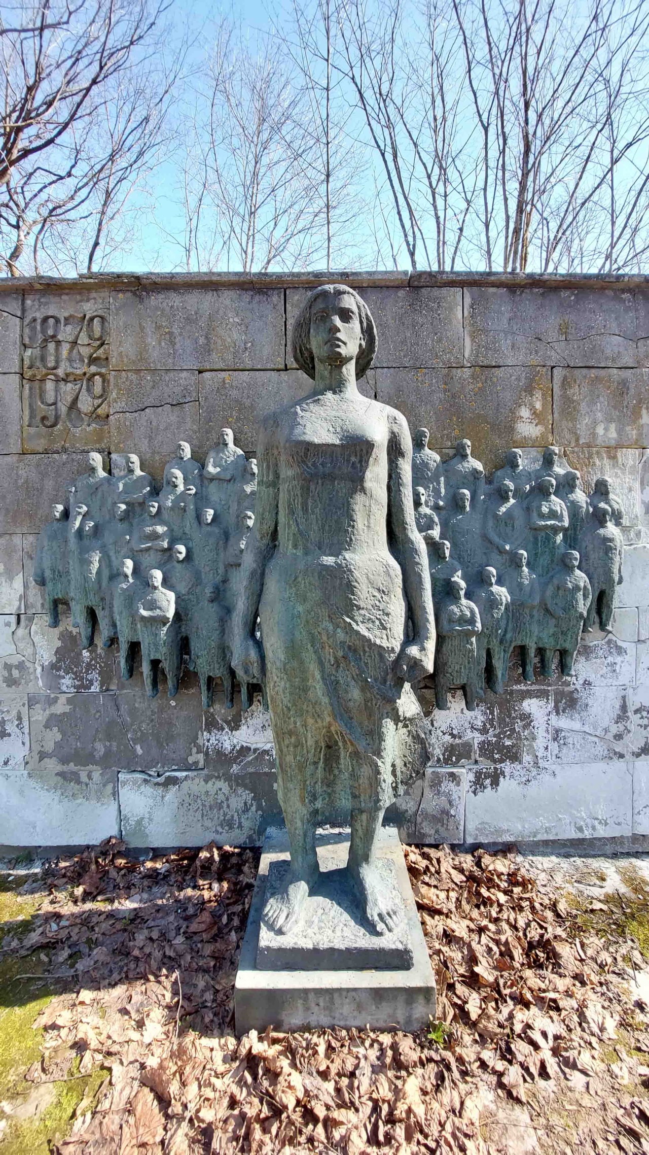 IM: Kreenholmi ala sissepääsu juures, vahetult enne silda, asub monument töölistele, mis kujutab endast jõuliste kätega enesekindlas poosis naist seismas hulga väiksemate mehe- ja naisekujude ees, peal aastaarvud 1872–1972, meenutamaks Tsaari-Venemaa suurimaid tööliste streike. 2022. aastal, 150 aastat hiljem, pole seda saja-aasta monumenti võimalik näha, kuna see seisab tehase erastatud territooriumil, tänava ja tehasehoovi vahel, näoga eraettevõtte Rapid Security OÜ poole. Selle asemel, et tööliste au ja kannatusi tähistada, vastutab turvafirma nüüd tühjaks jäänud tootmisala heakorra ja ohutuse eest. Monumentaalne naine on jäetud üksi pimedasse ja hüljatud paika, eelmise ajastu raskusi meenutama. Tema ees metsiku haljastuse keskel asuv roheline pargipink pakub võimaluse mõtiskluseks; tema selja taga aga hoiab okastraat inimesi Eesti piiri ületamast. Minu arvates on see väga huvitav monument, mis kujutab hästi praegust olukorda, kus on korraga koos avalik ja privaatne, mitmekesine ja individuaalne, kunstiline ja igapäevane, mõtisklev ja turvaline, tööstuslik ja looduslik.