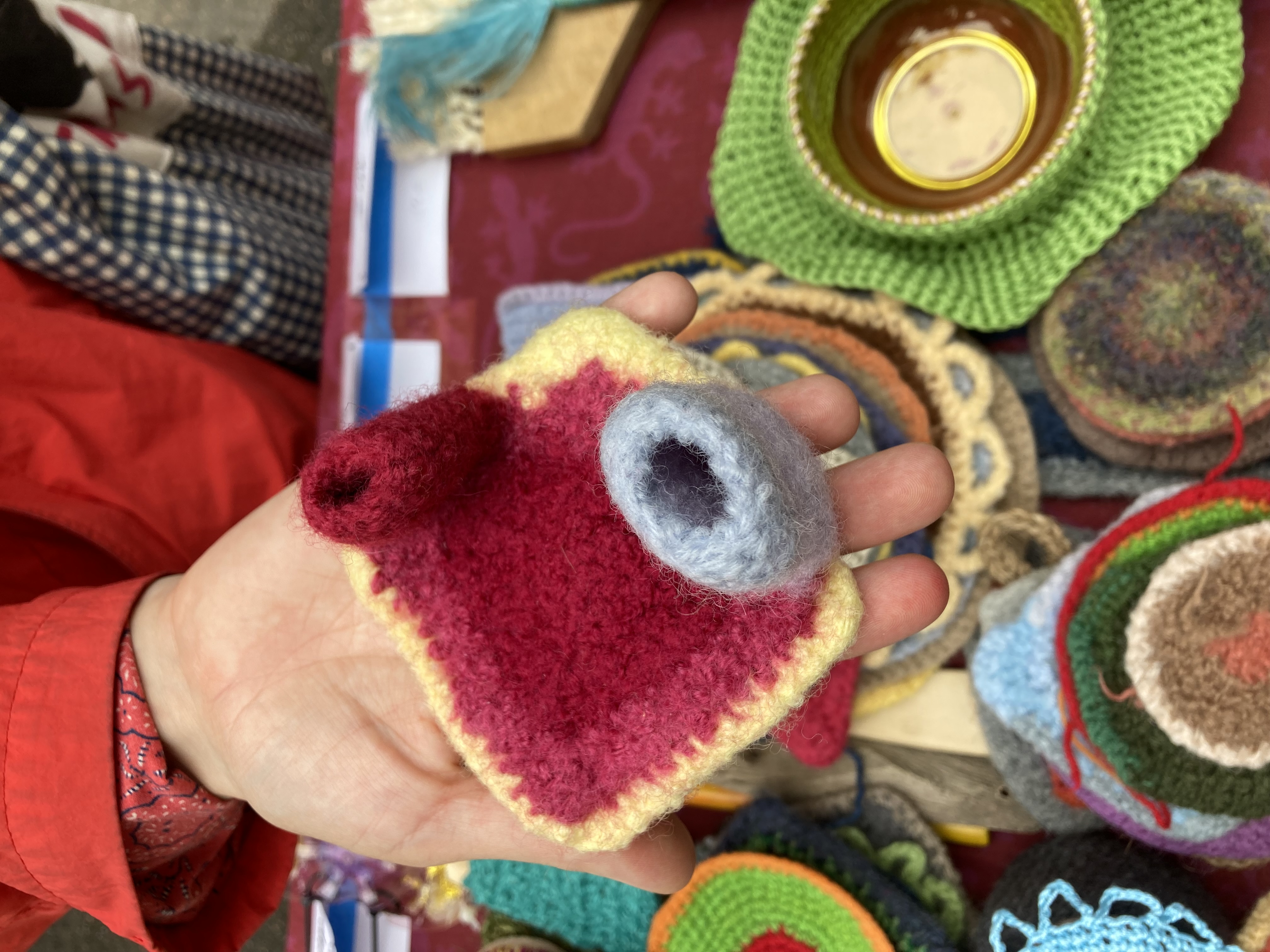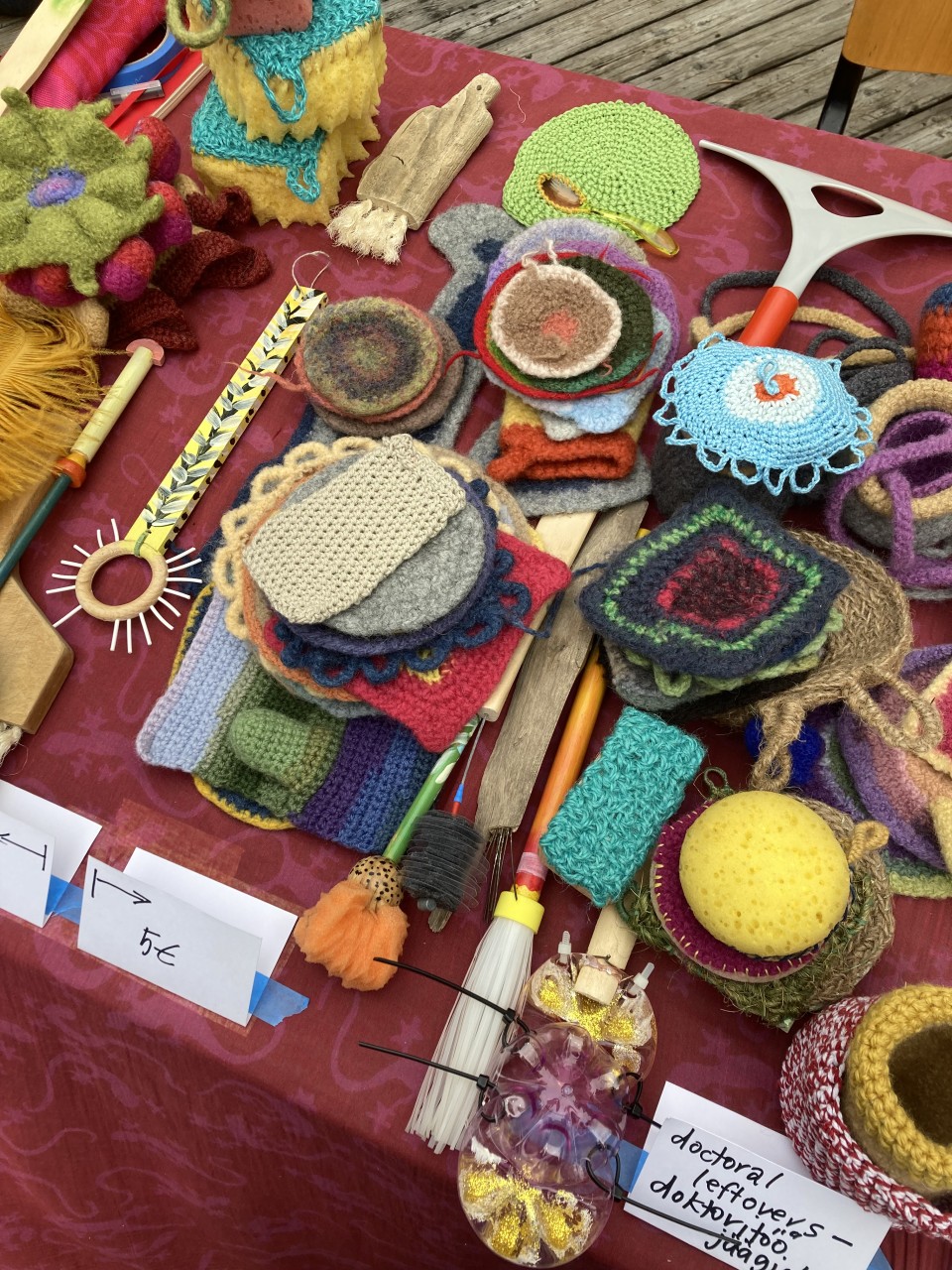 Asjadest loobumine ei pea olema vägivaldne. Paar kuud tagasi hakkasin mõningaid oma töid üles harutama. Kui ese oli tehtud erinevatest materjalidest, võtsin selle tükkideks, eraldades osad taaskasutuse ja prügikasti jaoks ning pannes mõned jupid kõrvale uute teoste loomise materjaliks. Paljud nendest asjadest olid kootud või heegeldatud ja nüüd, diivanil telekat vaadates, harutasin need sama konkreetsuse ja hoolega üles, nagu olin need kunagi kudunud või heegeldanud. Kerisin sellest tekkinud lõnga kokku korrapärasteks keradeks.