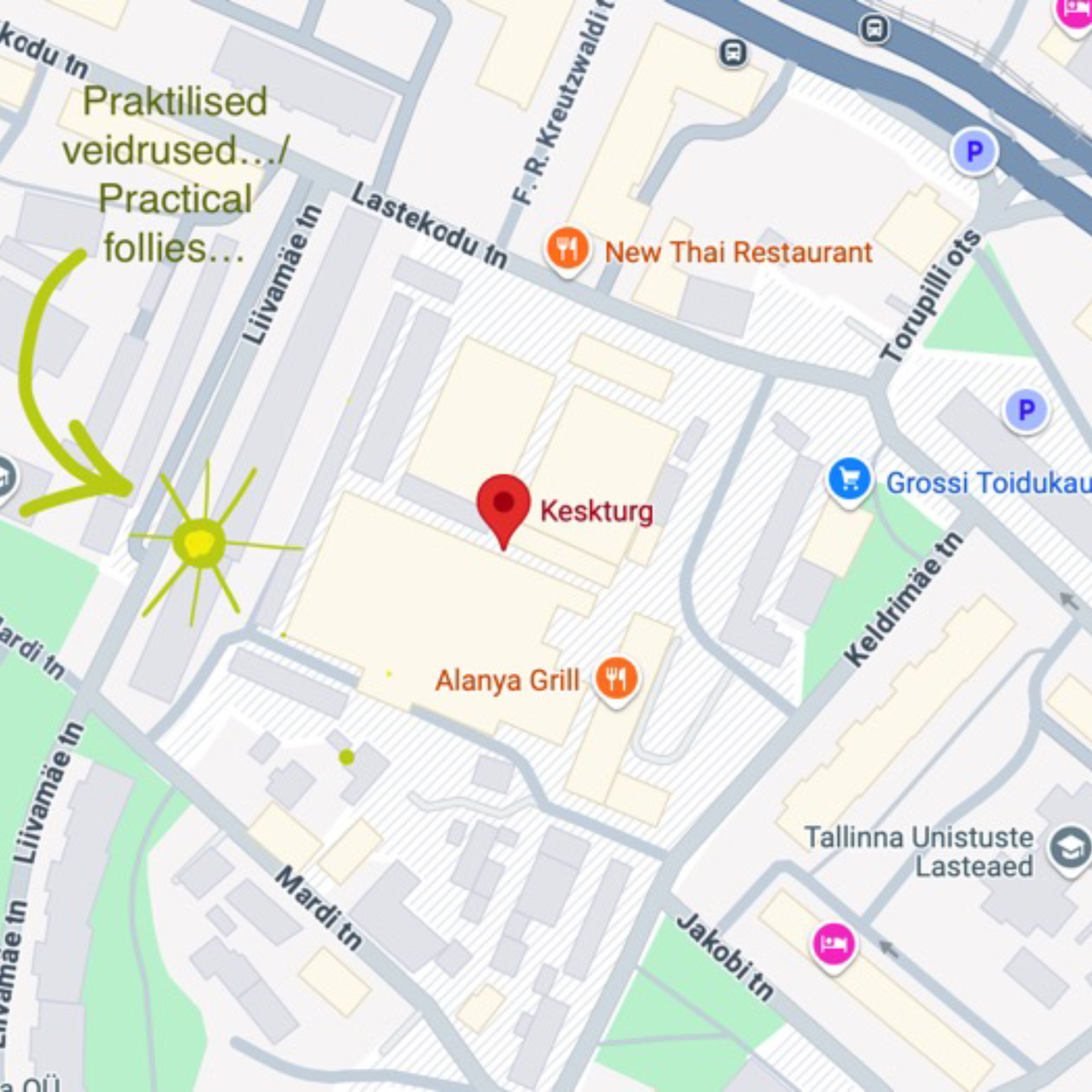 9. Artishoki biennaal pani mind külastama kohti ja linnaosasid, kus ma polnud varem käinud või mida polnud läbinud. Teades, et varsti lahkun Tallinnast, ja olemata kindel, millal linna uuesti külastan, olen salvestanud kunstiteoste asukohad täppidena oma Google Mapsi. Soovides kaardistada jälgi millestki, mis võib muutuda kummituseks, kuid lasta nendel kummituslikel trajektooridel juhtida ka edaspidi minu liikumist Tallinnas.