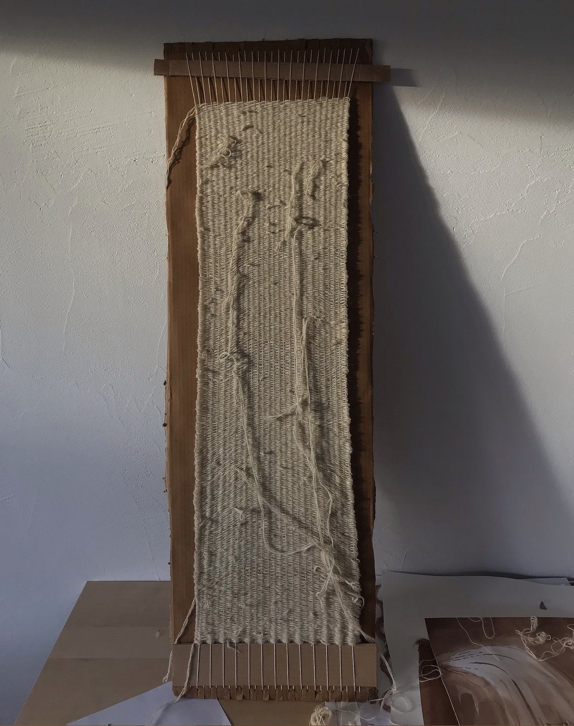 SK: Ma olen Jussiga sama meelt. Materjal on tihti see, mis mind kindla kohaga seostab. Olen viimasel ajal üritanud töötada nii, et ma ei ostagi materjali, vaid kasutan materjale, mida on ohtralt olemas seal, kus ma mingil hooajal parajasti viibin. Ma olin viimasel talvel Lätis, ja siis ma mõtlesin, et mida ma teen, sest ma olen tavaliselt töötanud taimedega, aga talvel midagi ju ei kasva. Ma leidsin käbisid, millest sain teha väga ilusat värvi. Seal õppisin töötama ka metsiku saviga, mida leidsin kohalikust rannast. Ja ehitasin YouTube’i video järgi taaskasutatud papist kudumismasina. Mulle meeldivad sellised empowering asjad. See, et igaüks võib tööriistad ise luua. Ka tööriistade loomine võib olla osa kunstipraktikast.