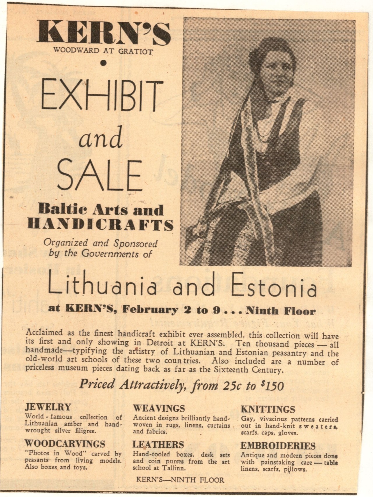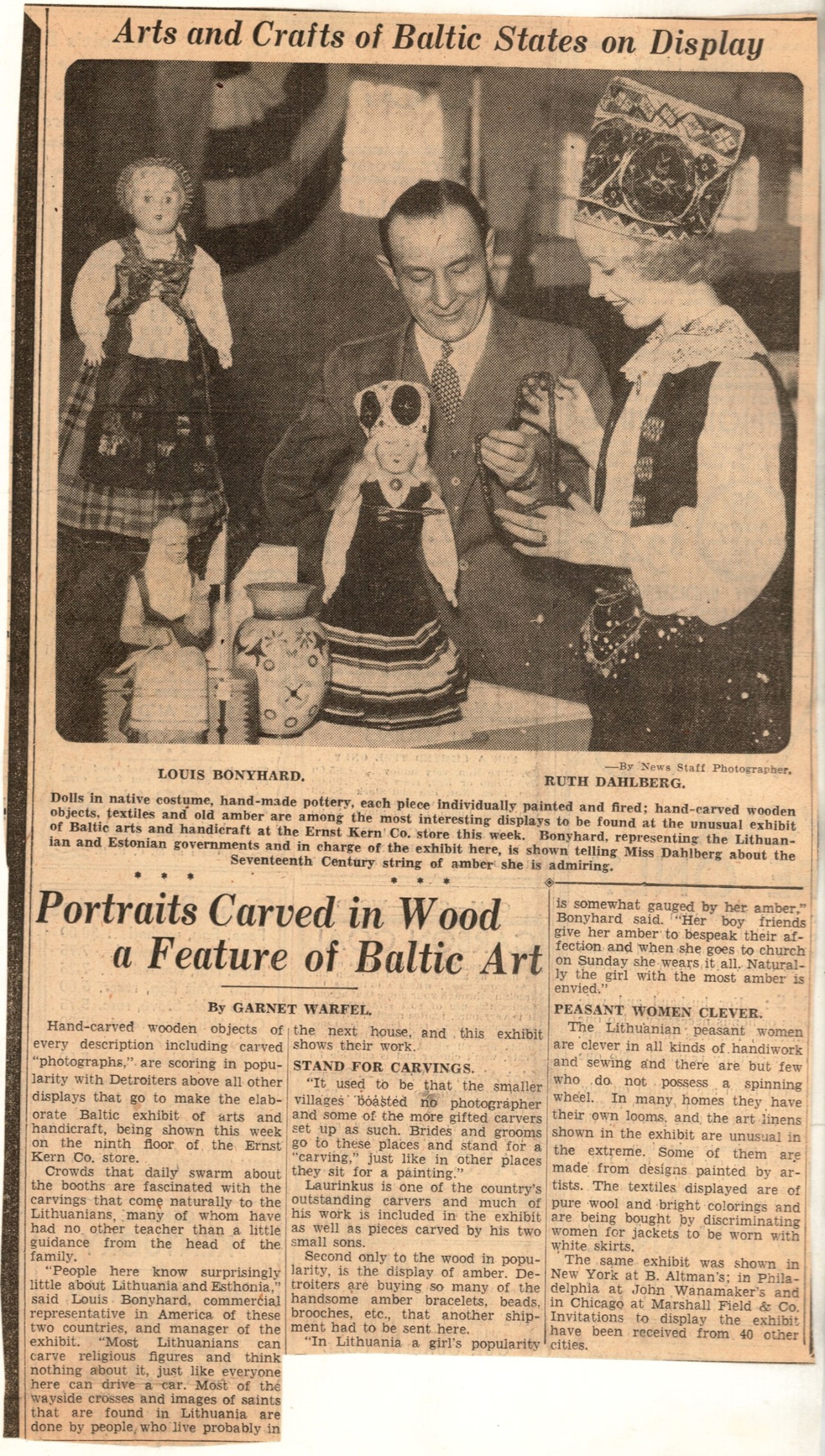 Peagi hakkasid ettevõtte juhid oma toodete müügiks välismaiseid turustusvõimalusi otsima. Aastatel 1934–1935 leidsid USA kaubanduskeskustes (New Yorgis, Philadelphias, Chicagos ja mujal) aset Leedu ja Eesti traditsioonilise käsitöö väljapanekud. Nende eesmärgiks oli nii Leedu tutvustamine kui tema käsitöötoodete müük. Väljapanekute peamine korraldaja oli Marginiai ettevõte. Leedu ja Eesti tooted olid sedavõrd kõrges hinnas, et ühe nädala jooksul külastas Chicago näitust 45 000 inimest, kes ostsid esimesel päeval kaupa 500 dollari väärtuses. Edust kannustatuna otsustas poe juhtkond rajada Leedu kaupadele spetsiaalse alalise osakonna, mis kujundati Leedu tare stiilis.3
